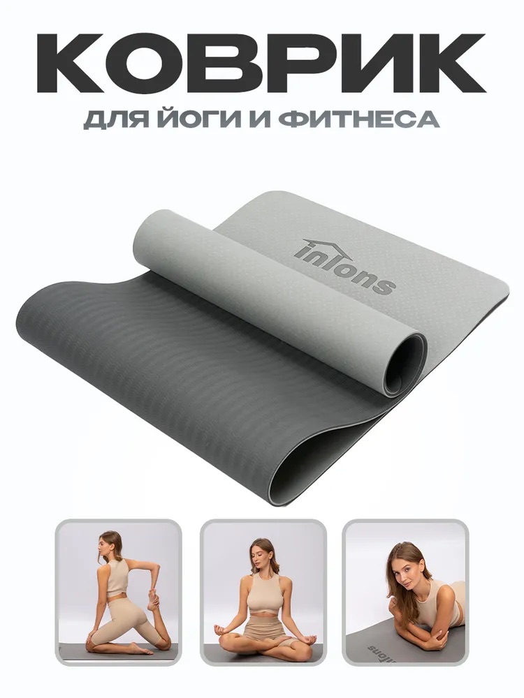 Серый нескользящий коврик Inlons для тренировок, йоги и стретчинга. Нейтральный цвет подходит для широкого ассортимента и повторных закупок.